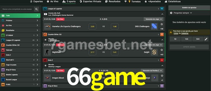 O 66game oferece uma grande seleção de opções de apostas em e-sports com probabilidades competitivas